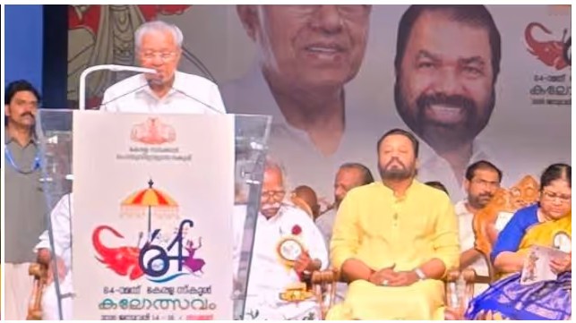 സ്കൂൾ കലോൽസവത്തിന്റെ ഉദ്ഘാടന വേദിയിലും രാഷ്ട്രീയ വിവാദം. മനുഷ്യനെ തമ്മിലടിപ്പിക്കുന്ന എല്ലാ ഛിദ്ര ആശയങ്ങളെയും തള്ളിക്കളയാനും, എല്ലാവരെയും ഒന്നിപ്പിക്കുന്ന കല ഉയർത്തിപ്പിടിക്കാനും സാധിക്കണമെന്ന് മുഖ്യമന്ത്രി പിണറായി പറഞ്ഞു. കലാമേളയുടെ ഉദ്ഘാടന പ്രസംഗത്തിലാകെ ബി ജെ പിയെ പരോക്ഷമായി വിമർശിക്കുന്ന രാഷ്ട്രീയമായിരുന്നു മുഖ്യമന്ത്രി പറഞ്ഞത്. ക്രിസ്മസ് കരോളിനെതിരായ ആക്രമണമടക്കം മുഖ്യമന്ത്രി പരാമർശിച്ചു. സിനിമയിലെ കഥാപാത്രങ്ങൾക്ക് ജാനകി എന്ന് പേരിടാൻ പോലും കഴിയാത്ത സ്ഥിതിയുണ്ടെന്നും സുരേഷ് ഗോപിയെ വേദിയിലിരുത്തി പിണറായി വിജയൻ വിമർശനം ഉന്നയിച്ചു. കേന്ദ്രം ഫണ്ട് തടഞ്ഞുവെച്ചിട്ടും സംസ്ഥാനം ഒരു കുറവും കുട്ടികൾക്ക് വരുത്തിയിട്ടില്ലെന്ന് വിദ്യാഭ്യാസ മന്ത്രി വി ശിവൻകുട്ടിയും പറഞ്ഞു.തുടർന്നു സംസാരിച്ച കേന്ദ്ര മന്ത്രി സുരേഷ് ഗോപിയാകട്ടെ ഒന്നിനും നേരിട്ട് മറുപടി പറഞ്ഞില്ല. എന്നാൽ മുഖ്യമന്ത്രിയുടെയും, വിദ്യാഭ്യാസ മന്ത്രിയുടെയും പരാമർശങ്ങളിലുള്ള അതൃപ്തി കേന്ദ്ര മന്ത്രിയുടെ വാക്കുകളിൽ പ്രകടവുമായിരുന്നു. അന്തസ് കുറഞ്ഞ രാഷ്ട്രീയ ആരോപണങ്ങൾക്ക് പറയാൻ കുട്ടികളുടെ വേദി ഉപയോഗിക്കുന്നില്ലെന്നായിരുന്നു സുരേഷ് ഗോപിയുടെ തിരിച്ചടി. നിയമസഭ തിരഞ്ഞെടുപ്പ് പടിവാതിൽക്കലെത്തി നിൽക്കെ നടക്കുന്ന സംസ്ഥാന സ്കൂൾ കലോൽസവത്തിന്റെ ഉദ്ഘാടന വേദി അങ്ങനെ രാഷ്ട്രീയ തർക്കങ്ങളുടെ കൂടി വേദിയായി മാറി.