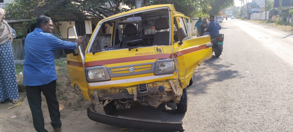 വിദ്യാർത്ഥികളുമായി വന്ന വണ്ടി നിയന്ത്രണം തെറ്റി വൈദ്യുത തൂണിലിടിച്ചു. അപകടത്തിൽ ആർക്കും പരിക്കില്ല