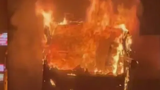 ടൂറിസ്റ്റ് ബസിന് തീപിടിച്ചു,പൂർണമായും കത്തിനശിച്ചു