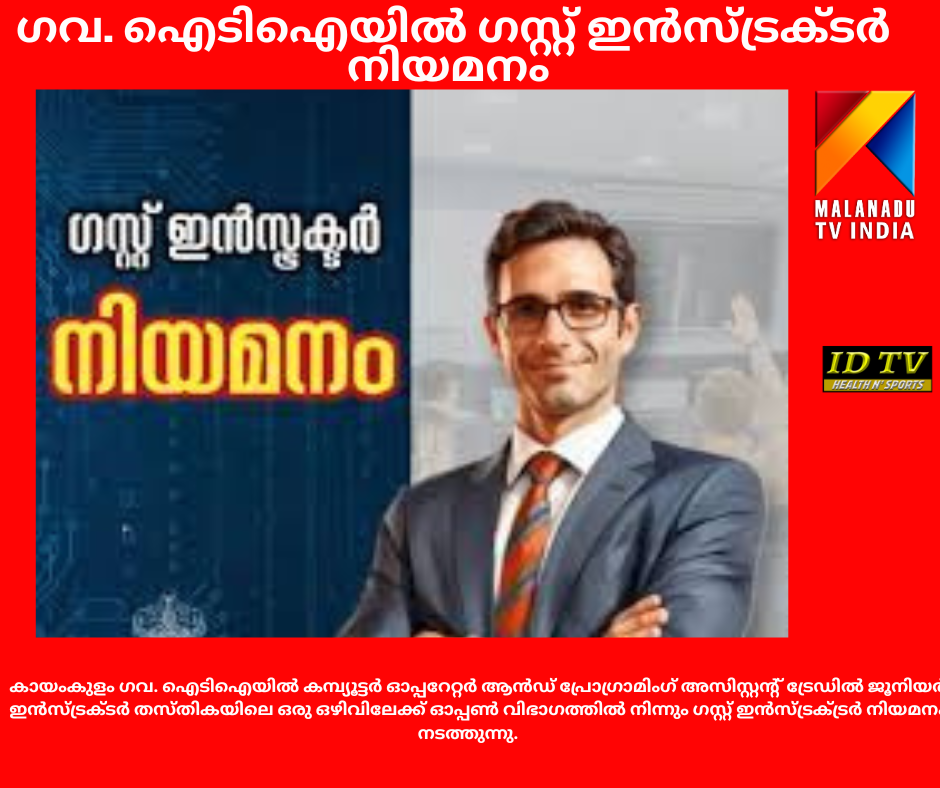 കായംകുളം ഗവ. ഐടിഐയില് ഗസ്റ്റ് ഇൻസ്ട്രക്ടർ നിയമനം