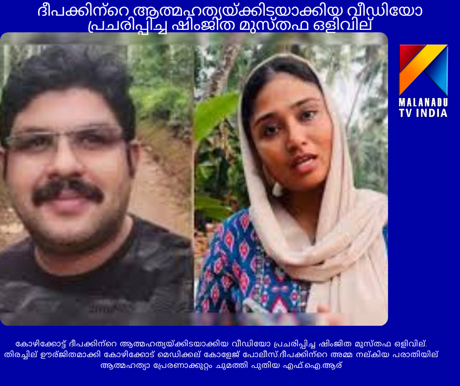 കോഴിക്കോട് ഗോവിന്ദപുരം സ്വദേശി ദീപക് ജീവനൊടുക്കിയ കേസില് പ്രതി ഷിംജിത മുസ്തഫ സംസ്ഥാനം വിട്ടതായി സൂചന. ഇവര് മംഗളൂരുവിലേക്ക് കടന്നുവെന്നാണ് പൊലീസിന് കിട്ടിയിരിക്കുന്ന വിവരം. ഇവരെ കണ്ടെത്തുന്നതിനുള്ള ശ്രമം പൊലീസ് തുടരുകയാണ്.ദീപക്കിന്റെ ദൃശ്യങ്ങള് ചിത്രീകരിച്ച ഇവരുടെ മൊബൈല് ഫോണും പൊലീസിന് കണ്ടെടുക്കേണ്ടതുണ്ട്. അതിനിടെ ഷിംജിത മുന്കൂര് ജാമ്യം നേടാനുള്ള ശ്രമം തുടങ്ങിയതായും സൂചനയുണ്ട്. അതിനിടെ യുവതി വിഡിയോ ചിത്രീകരിച്ച ബസിലെ സിസിടിവി ദൃശ്യങ്ങള് പൊലീസ് ശേഖരിച്ചു. എന്നാല് ബസിലെ തിരക്കിന്റെ ദൃശ്യങ്ങളാണു ദൃശ്യങ്ങളിലുള്ളത്. യുവതി സാമൂഹിക മാധ്യമത്തില് പങ്കുവച്ച വീഡിയോ എഡിറ്റ് ചെയ്തു നീളം കുറച്ചതാണെന്നു പൊലീസ് കണ്ടെത്തിയിട്ടുണ്ട്.വീഡിയോയുടെ പൂര്ണരൂപം വീണ്ടെടുക്കാന് സൈബര് സെല്ലിന്റെ സഹായം തേടും.