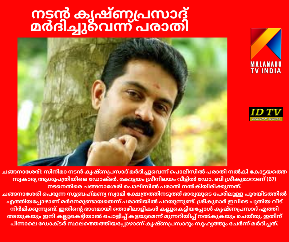 നടൻ കൃഷ്ണപ്രസാദ് മർദിച്ചുവെന്ന് പരാതി
