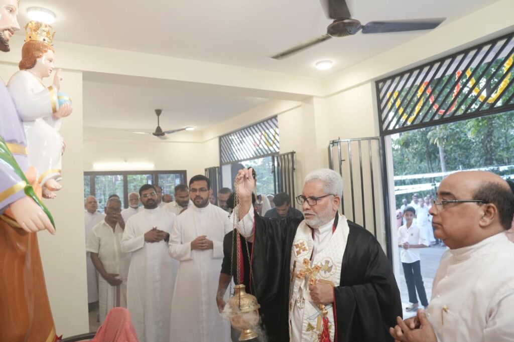 ഞീഴൂര്: മരങ്ങോലി സെന്റ് മേരീസ് ദൈവാലയത്തില് വിശുദ്ധ സെബസ്ത്യാനോസിന്റെ തിരുനാളിന് ഇന്ന് കൊടിയേറും. വിശുദ്ദ യൗസേഫ് പിതാവിന്റെ നാമധേയത്തില് പുതുതായി നിര്മിച്ച മടുക്ക സെന്റ് ജോസഫ് കുരിശുപള്ളിയുടെ വെഞ്ചരിപ്പ് ഇന്നലെ വൈകൂന്നേരം ബിഷപ്പ് മാര് ജോസഫ് കല്ലറങ്ങാട്ട് നിര്വഹിച്ചു. തുടര്ന്ന് നടന്ന സമ്മേളനം ബിഷപ്പ് ഉദ്ഘാടനം ചെയ്തു. വികാരി റവ.ഡോ. ജോസഫ് പരിയാത്ത് അധ്യക്ഷത വഹിച്ചു. ഇലഞ്ഞി ഫൊറോനാ പള്ളി വികാരി ഫാ.ജോസഫ് ഇടംത്തുംപറമ്പില്, പാരീഷ് കൗണ്സില് സെക്രട്ടറി ബെന്നി കൊഴുപ്പന്കുറ്റി എന്നിവര് പ്രസംഗിച്ചു. ഇന്ന് വൈകൂന്നേരം അഞ്ചിന് കൊടിയേറ്റ്-വികാരി റവ.ഡോ. ജോസഫ് പരിയാത്ത് കാര്മികത്വം വഹിക്കും. തുടര്ന്ന് വിശുദ്ധ കുര്ബാന, പ്രസംഗം ഫാ.മാണി കൊഴുപ്പന്കുറ്റി, സിമിത്തേരി സന്ദര്ശനം. നാളെ രാവിലെ ഏഴിന് വിശുദ്ധ കുര്ബാന-ഫാ.മാത്യു കവളംമാക്കല്. മൂന്നിന് വിശുദ്ധരുടെ തിരുസ്വരൂപങ്ങള് വണക്കത്തിനു പ്രതിഷ്ഠിക്കുന്നു, 6.15ന് മടുക്ക കുരിശുപള്ളിയില് ലദീഞ്ഞ്-പാലക്കാട് ബിഷപ്പ് മാര്.പീറ്റര് കൊച്ചുപുരയ്ക്കല്, 6.30ന് വിവിധ പന്തലുകളില് നിന്ന് മരങ്ങോലി കുരിശു പള്ളിയിലേക്കു പ്രദക്ഷിണം ആരംഭിക്കും. എട്ടിന് പ്രദക്ഷിണസംഗമം- മരങ്ങോലി കപ്പേളയില്, ലദീഞ്ഞ്, പ്രസംഗം-ഫാ.ഫിലിപ്പ് രാമച്ചനാട്ട്, 8.30ന് പ്രദക്ഷിണം പള്ളിയിലേക്ക്, ഒമ്പതിന് സമാപന പ്രാര്ത്ഥന, 9.15ന് ഫ്യൂഷന് വിത്ത് ഗാനമേള (കുന്നലക്കാടന്സ്, മൂവാറ്റുപുഴ). 25ന് രാവിലെ ഏഴിന് വിശുദ്ധ കുര്ബാന, പത്തിന് തിരുനാള് കുര്ബാന-ഫാ.ജോര്ജ് പീച്ചാനിക്കുന്നേല്, പ്രസംഗം-ഫാ.സെബാസ്റ്റ്യന് ചാമക്കാലായില്, 11.30ന് പ്രദക്ഷിണം, 12.15ന് സമാപനപ്രാര്ത്ഥന, പ്രസുദേന്തിവാഴ്ച, ഏഴിന് ഗാനമേള (അമല കമ്യൂണിക്കേഷന്സ്, കാഞ്ഞിരപ്പള്ളി). ഫോട്ടോ ക്യാപ്- മരങ്ങോലി സെന്റ് മേരീസ് ഇടവകയുടെ പുതുതായി നിര്മിച്ച മടുക്ക സെന്റ് ജോസഫ് കുരിശുപള്ളിയുടെ വെഞ്ചിരിപ്പ് ബിഷപ്പ് മാര്.ജോസഫ് കല്ലറങ്ങാട്ട് നിര്വഹിക്കുന്നു. വികാരി റവ. ഡോ. ജോസഫ് പരിയാത്ത് സമീപം.