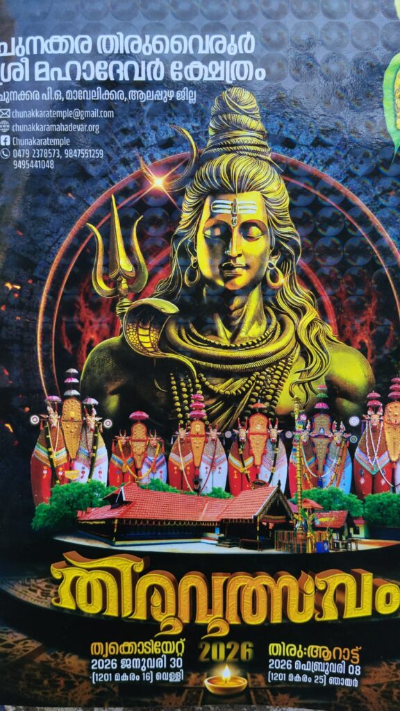 ചുനക്കര തിരു വൈരൂർ മഹാദേവർ ക്ഷേത്രം തിരുത്സവം തൃക്കൊടിയേറ്റ് 30ന്