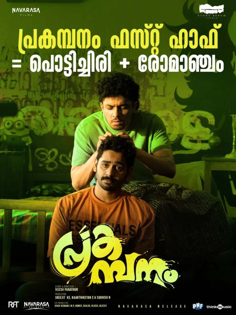 വലിയ അവകാശവാദങ്ങളോ ആർഭാടപൂർവ്വമായ പ്രചരണങ്ങളോ ഇല്ലാതെ തിയേറ്ററുകളിലെത്തിയ ‘പ്രകമ്പനം’ പ്രേക്ഷകരെ വിസ്മയിപ്പിക്കുന്നു. ‘നദികളിൽ സുന്ദരി യമുന’ എന്ന ചിത്രത്തിന് ശേഷം വിജേഷ് പാണത്തൂർ സംവിധാനം ചെയ്ത ഈ ചിത്രം, ഹൊറർ-കോമഡി ഴോണറിൽ മലയാളികൾക്ക് പുത്തൻ അനുഭവമാണ് സമ്മാനിക്കുന്നത്. കാർത്തിക് സുബ്ബരാജിന്റെ സ്റ്റോൺ ബെഞ്ച് സ്റ്റുഡിയോയും നവരസ ഫിലിംസും ചേർന്നാണ് ചിത്രം അവതരിപ്പിക്കുന്നത്.‘നദികളിൽ സുന്ദരി യമുന’ എന്ന ചിത്രത്തിന് ശേഷം വിജേഷ് പാണത്തൂർ സംവിധാനം ചെയ്ത ഈ ചിത്രം, ഹൊറർ-കോമഡി ഴോണറിൽ മലയാളികൾക്ക് പുത്തൻ അനുഭവമാണ് സമ്മാനിക്കുന്നത്. കാർത്തിക് സുബ്ബരാജിന്റെ സ്റ്റോൺ ബെഞ്ച് സ്റ്റുഡിയോയും നവരസ ഫിലിംസും ചേർന്നാണ് ചിത്രം അവതരിപ്പിക്കുന്നത്. റണാകുളം നഗരത്തിലെ ഒരു ബോയ്സ് ഹോസ്റ്റലിനെ ചുറ്റിപ്പറ്റിയാണ് കഥ നടക്കുന്നത്. കണ്ണൂരുകാരനായ നിരീശ്വരവാദി സിദ്ധാർത്ഥൻ (ഗണപതി), ഉഴപ്പനായ പുണ്യാളൻ (സാഗർ സൂര്യ), സോഷ്യൽ മീഡിയയിൽ സജീവമായ ശങ്കരൻ (അമീൻ) എന്നിവരടങ്ങുന്ന മൂവർ സംഘം കോളേജ് ഇലക്ഷൻ തന്ത്രങ്ങൾക്കിടയിൽ എത്തിപ്പെടുന്ന നിഗൂഢമായ സാഹചര്യങ്ങളാണ് ചിത്രത്തിന്റെ ഇതിവൃത്തം. സിദ്ധാർത്ഥന്റെ അച്ചമ്മയായ ചെമ്പകത്തമ്മയുടെ (മല്ലിക സുകുമാരൻ) മരണാനന്തര ചടങ്ങുകളുമായി ബന്ധപ്പെട്ട രാഷ്ട്രീയവും അന്ധവിശ്വാസങ്ങളും ഇതിൽ ആക്ഷേപഹാസ്യ രൂപത്തിൽ കടന്നുവരുന്നു.അടുത്തിടെ ഇറങ്ങിയ ചിത്രങ്ങളിലെ വില്ലൻ വേഷങ്ങളിൽ നിന്ന് മാറി, ഉടനീളം തമാശ നിറഞ്ഞ കഥാപാത്രമായി സാഗർ സൂര്യ സ്ക്രീനിൽ നിറഞ്ഞുനിൽക്കുകയാണ്. ഗണപതിയുടെ ടൈമിംഗും അമീനുമായുള്ള കെമിസ്ട്രിയും ചിത്രത്തെ മികച്ചൊരു വിരുന്നാക്കുന്നു. കണ്ണൂർ സ്ലാങ്ങിൽ സംസാരിക്കുന്ന അച്ചമ്മയായി മല്ലിക സുകുമാരനും, സ്റ്റാൻസിലാവോസ്കി എന്ന വേഷത്തിൽ രാജേഷ് മാധവനും കൈയ്യടി നേടുന്നു. അന്തരിച്ച നടൻ കലാഭവൻ നവാസിന്റെ വെള്ളിത്തിരയിലെ അവസാന പ്രകടനം പ്രേക്ഷകർക്ക് വൈകാരികമായ അനുഭവമാണ്.അശ്ലീല സംഭാഷണങ്ങളോ ദ്വയാർത്ഥ പ്രയോഗങ്ങളോ ഇല്ലാതെ തന്നെ പ്രേക്ഷകരെ ചിരിപ്പിക്കാൻ തിരക്കഥാകൃത്ത് ശ്രീഹരി വടക്കന് സാധിച്ചു. ആൽബി ആന്റണിയുടെ ദൃശ്യങ്ങളും ശങ്കർ ശർമയുടെ പശ്ചാത്തല സംഗീതവും ചിത്രത്തിന് ഹൊറർ മൂഡ് നൽകുന്നതിൽ വിജയിച്ചു