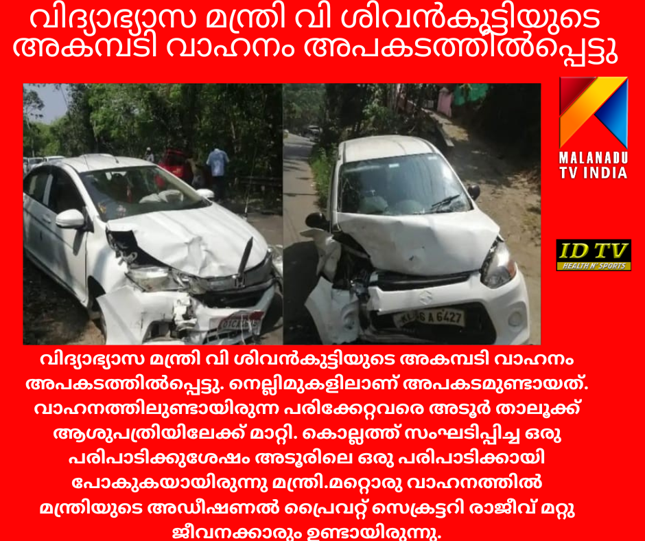 വിദ്യാഭ്യാസ മന്ത്രി വി ശിവൻകുട്ടിയുടെ അകമ്പടി വാഹനം അപകടത്തില്പ്പെട്ടു
