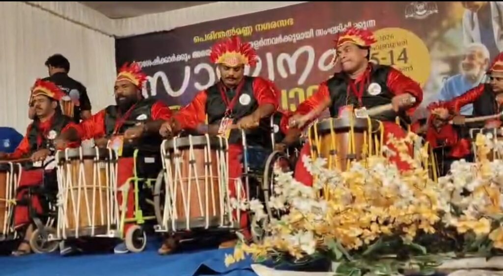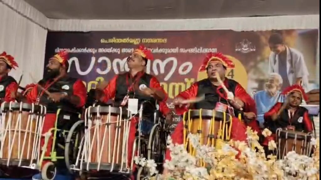 പെപ്പിൻ മാഷും സംഘവും പരിമിതികൾ മറന്ന് വീൽചെയറിൽ ഇരുന്ന് കൊട്ടിക്കയറി