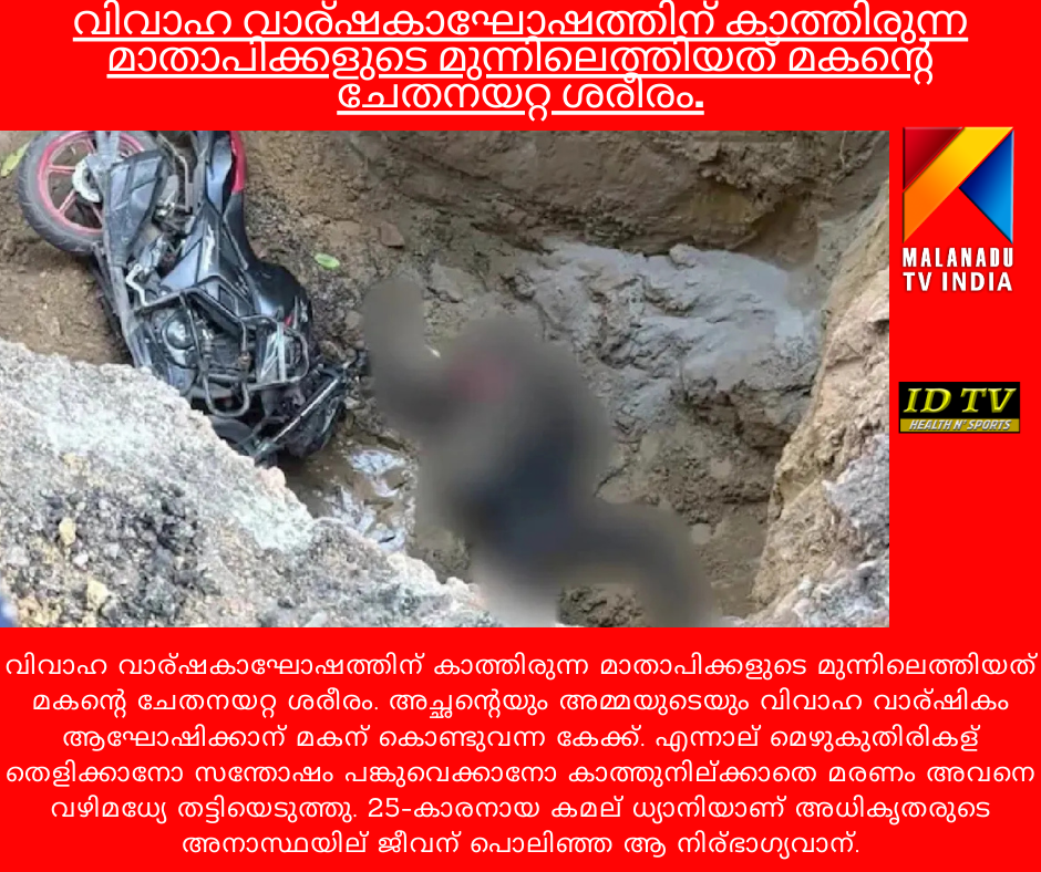 വിവാഹ വാര്ഷകാഘോഷത്തിന് കാത്തിരുന്ന മാതാപിക്കളുടെ മുന്നിലെത്തിയത് മകന്റെ ചേതനയറ്റ ശരീരം