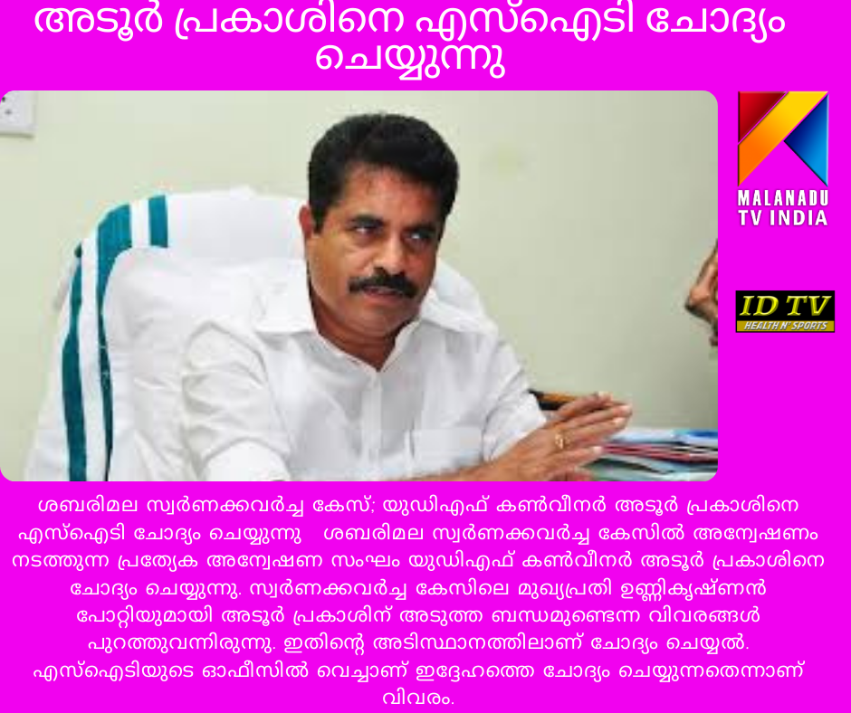 ശബരിമല സ്വർണക്കവർച്ച കേസ്; യുഡിഎഫ് കൺവീനർ അടൂർ പ്രകാശിനെ എസ്ഐടി ചോദ്യം ചെയ്യുന്നു