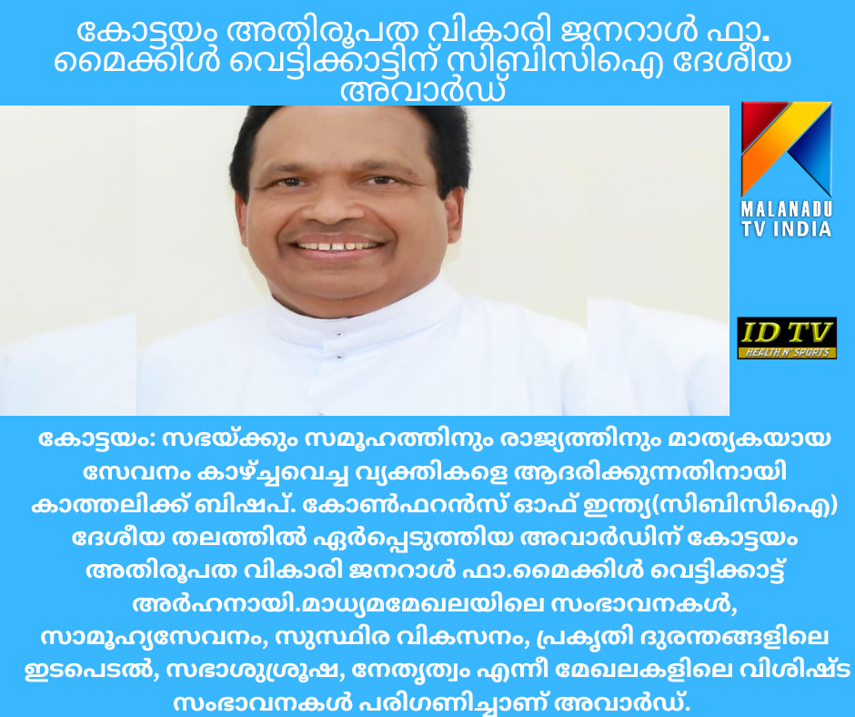 കോട്ടയം അതിരൂപത വികാരി ജനറാള് ഫാ. മൈക്കിള് വെട്ടിക്കാട്ടിന് സിബിസിഐ ദേശീയ അവാര്ഡ്