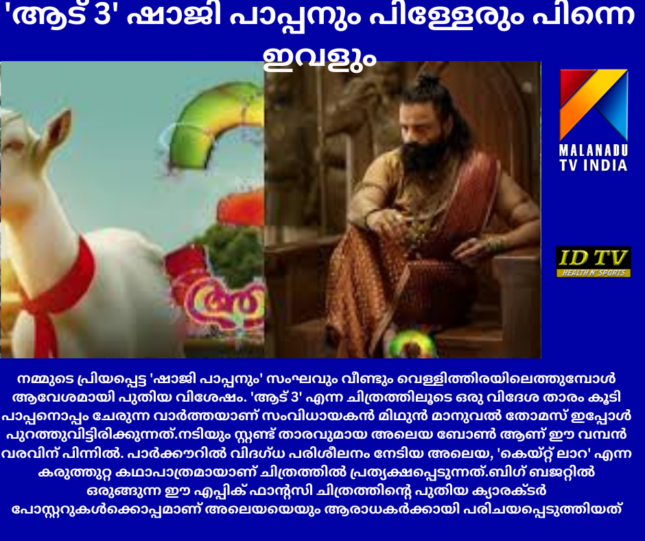 നമ്മുടെ പ്രിയപ്പെട്ട ‘ഷാജി പാപ്പനും’ സംഘവും വീണ്ടും വെള്ളിത്തിരയിലെത്തുമ്പോൾ ആവേശമായി പുതിയ വിശേഷം. ‘ആട് 3’ എന്ന ചിത്രത്തിലൂടെ ഒരു വിദേശ താരം കൂടി പാപ്പനൊപ്പം ചേരുന്ന വാർത്തയാണ് സംവിധായകൻ മിഥുൻ മാനുവൽ തോമസ് ഇപ്പോൾ പുറത്തുവിട്ടിരിക്കുന്നത്.നടിയും സ്റ്റണ്ട് താരവുമായ അലെയ ബോൺ ആണ് ഈ വമ്പൻ വരവിന് പിന്നിൽ. പാർക്കൗറിൽ വിദഗ്ധ പരിശീലനം നേടിയ അലെയ, ‘കെയ്റ്റ് ലാറ’ എന്ന കരുത്തുറ്റ കഥാപാത്രമായാണ് ചിത്രത്തിൽ പ്രത്യക്ഷപ്പെടുന്നത്.ബിഗ് ബജറ്റിൽ ഒരുങ്ങുന്ന ഈ എപ്പിക് ഫാൻ്റസി ചിത്രത്തിന്റെ പുതിയ ക്യാരക്ടർ പോസ്റ്ററുകൾക്കൊപ്പമാണ് അലെയയെയും ആരാധകർക്കായി പരിചയപ്പെടുത്തിയത്. നേരത്തെ രാജഭരണ കാലത്തുള്ള കഥാപാത്രങ്ങളുടെ ലുക്കുകൾ പുറത്തുവിട്ടിരുന്നെങ്കിലും, നിലവിലെ കാലഘട്ടത്തിലെ വേഷപ്പകർച്ചകൾ ഇന്നാണ് അവതരിപ്പിച്ചത്.ആരാധകരുടെ പ്രിയ കഥാപാത്രങ്ങളായ സാത്താൻ സേവ്യർ (സണ്ണി വെയ്ൻ), അറയ്ക്കൽ അബു (സൈജു കുറുപ്പ്), ക്യാപ്റ്റൻ ക്ലീറ്റസ് (ധർമ്മജൻ ബോൾഗാട്ടി) എന്നിവരുടെ പോസ്റ്ററുകൾക്ക് പിന്നാലെയാണ് അലെയയുടെ മാസ്സീവ് എൻട്രി മിഥുൻ പ്രഖ്യാപിച്ചത്.