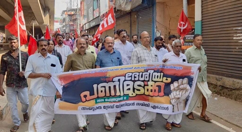 ദേശീയ പണിമുടക്ക്: പണിമുടക്കിയ തൊഴിലാളികൾ എടപ്പാളിൽ പ്രകടനവും പൊതുയോഗവും നടത്തി. സി.ഐ.ടി.യു അഖിലേന്ത്യ വൈസ് പ്രസിഡണ്ട് പി.നന്ദകുമാർ എം.എൽ.എ.ഉദ്ഘാടനം ചെയ്തു.