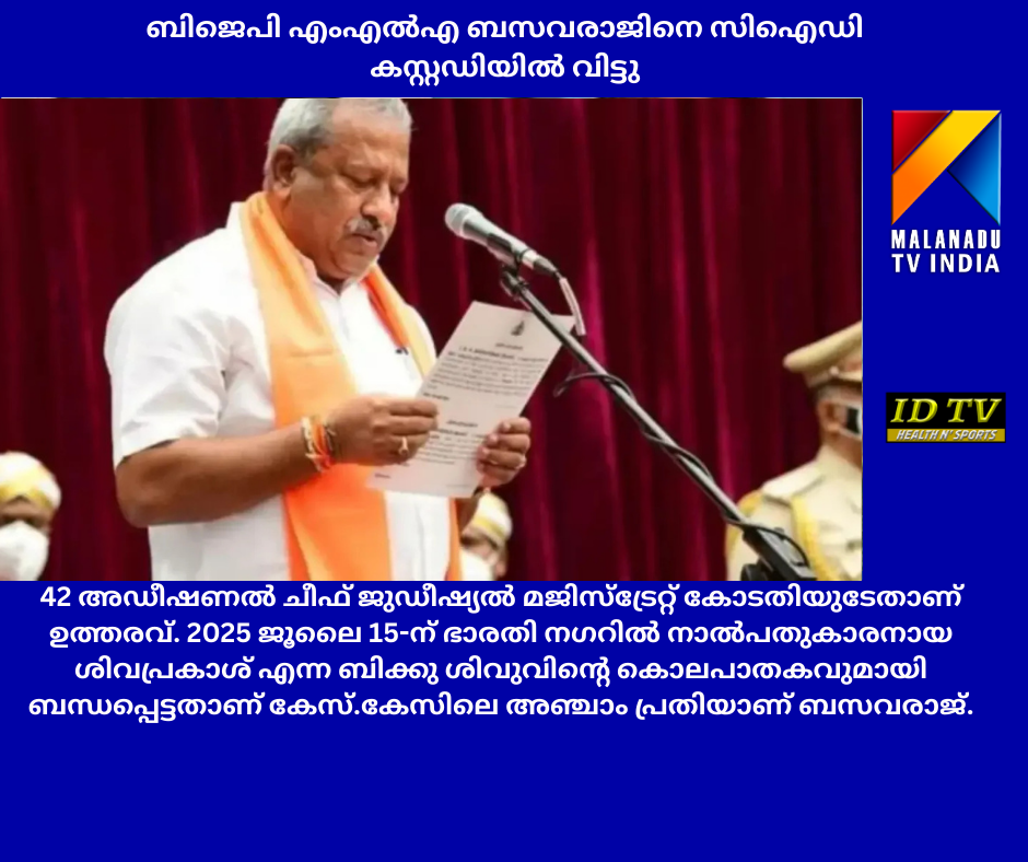 ബിജെപി എംഎൽഎയും മുൻമന്ത്രിയുമായ ബൈരതി ബസവരാജിനെ ഏഴ് ദിവസത്തെ സിഐഡി കസ്റ്റഡിയിൽ വിട്ടു.