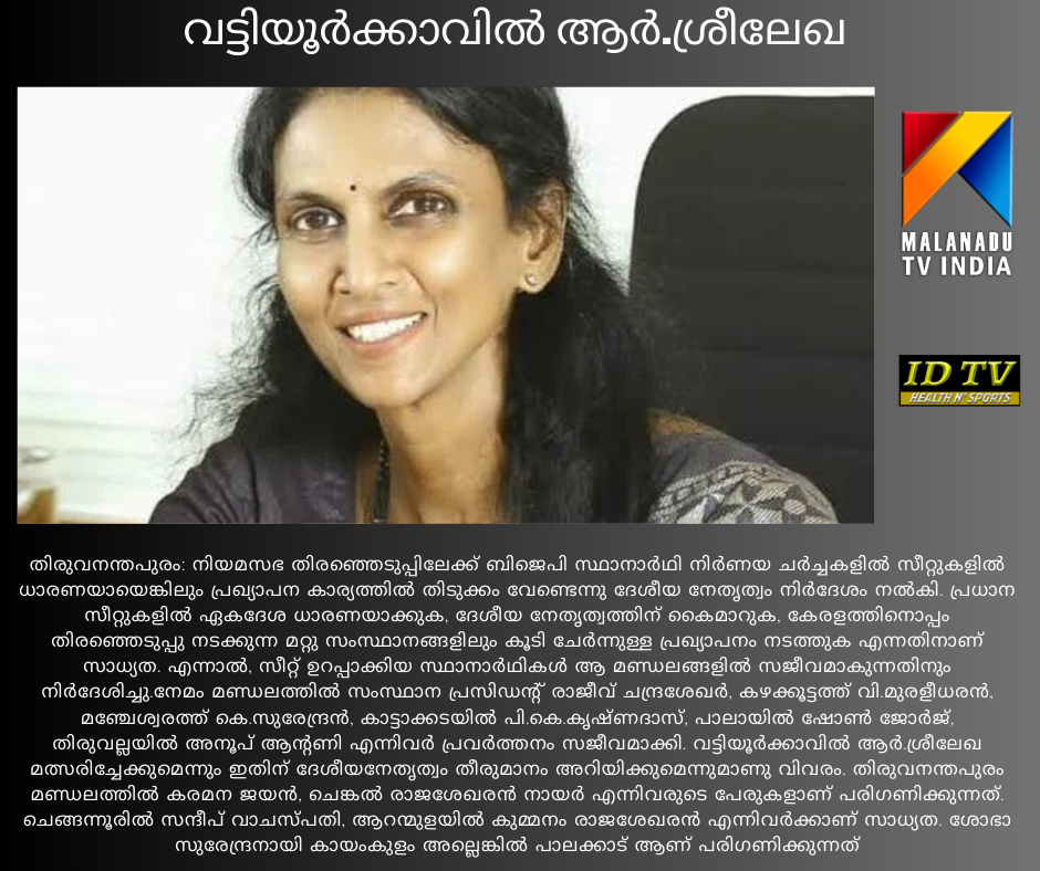 വട്ടിയൂർക്കാവിൽ ആർ.ശ്രീലേഖ