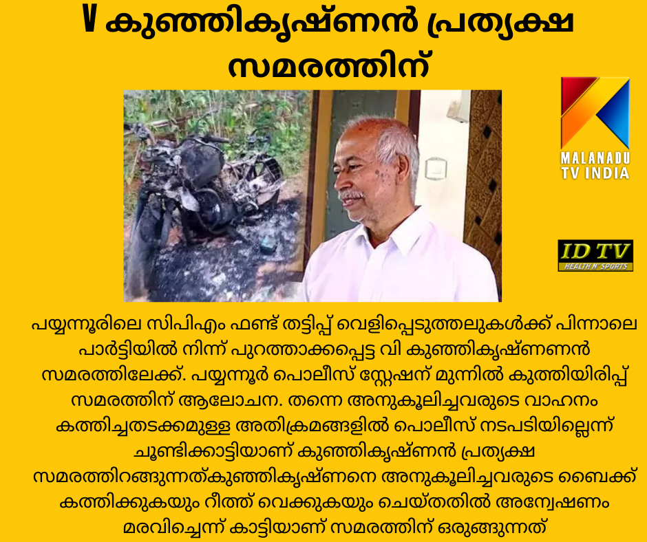 V കുഞ്ഞികൃഷ്ണൻ പ്രത്യക്ഷ സമരത്തിന്
