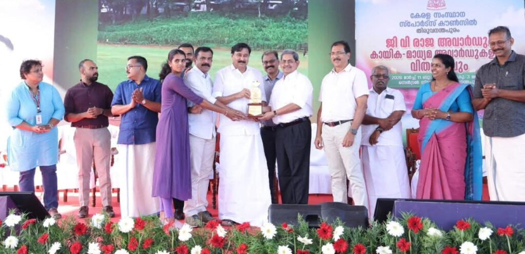 സംസ്ഥാനത്തെ മികച്ച കായിക കോളേജിനുള്ള ജി വി രാജ അവാർഡ് എം. എ. കോളേജിനു സമ്മാനിച്ചു