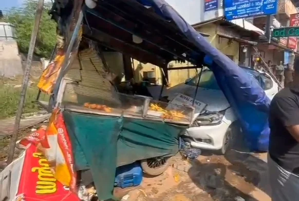 കാറ് തട്ടുകടയിലേക്ക് ഇടിച്ചു കയറി അപകടം