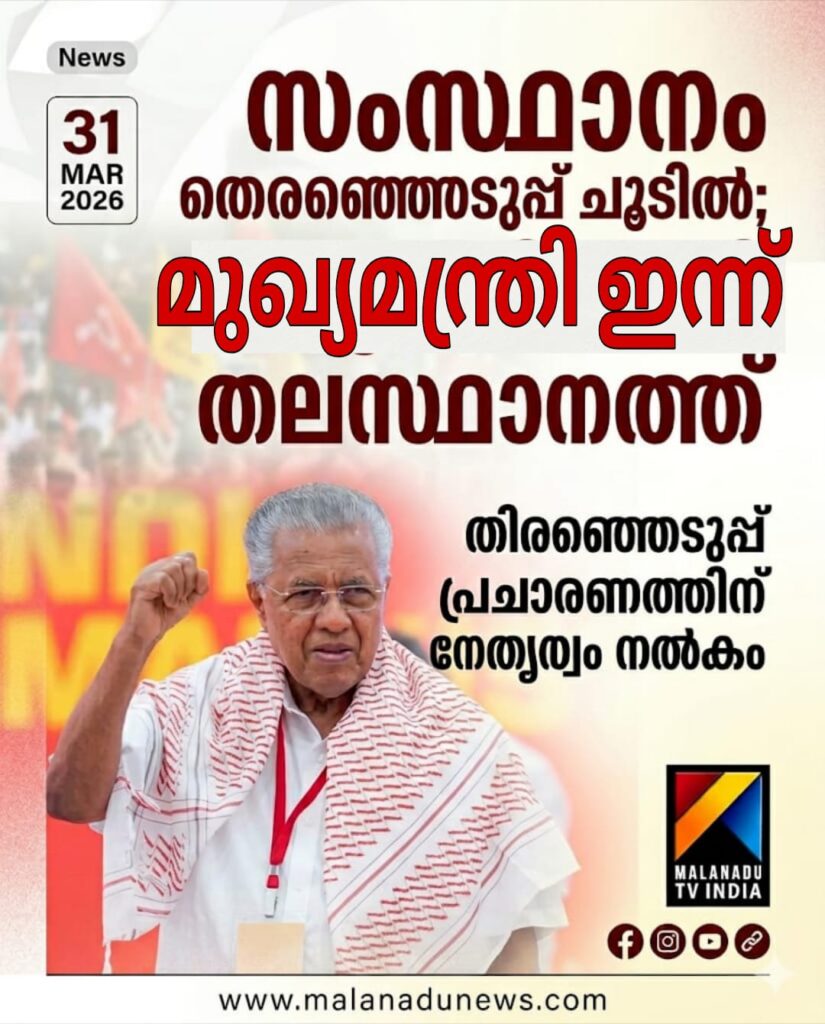 സംസ്ഥാനം തെരഞ്ഞെടുപ്പ് ചൂടിലേക്ക് നീങ്ങിയതോടെ രാഷ്ട്രീയ രംഗം സജീവമായിരിക്കുകയാണ്. വരാനിരിക്കുന്ന തിരഞ്ഞെടുപ്പുകൾക്ക് മുന്നോടിയായി മുന്നണികൾ തന്ത്രങ്ങൾ മെനയുന്നതിനിടയിൽ, ഭരണകക്ഷിയായ എൽ.ഡി.എഫ് വൻ പ്രചാരണ പരിപാടികൾക്കാണ് രൂപം നൽകുന്നത്.ഇതിന്റെ ഭാഗമായി, മുഖ്യമന്ത്രി പിണറായി വിജയൻ ഇന്ന് തലസ്ഥാനത്ത് എത്തും. തിരഞ്ഞെടുപ്പ് പ്രചാരണ പ്രവർത്തനങ്ങൾക്ക് അദ്ദേഹം നേരിട്ട് നേതൃത്വം നൽകും
