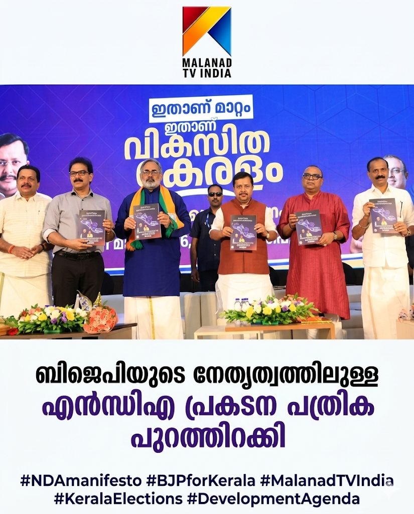തിരുവനന്തപുരം : ബിജെപിയുടെ നേതൃത്വത്തിലുള്ള എൻഡിഎ നിയമസഭാ തെരഞ്ഞെടുപ്പിനുള്ള പ്രകടന പത്രിക പുറത്തിറക്കി. ബിജെപി ദേശീയ അദ്ധ്യക്ഷൻ നിതിൻ നബിന്റെ നേതൃത്വത്തിൽ നടന്ന ചടങ്ങിൽ എൻഡിഎയുടെ എല്ലാ സഖ്യകക്ഷികളും പങ്കെടുത്തു. ‘വികസിത കേരളം, മോദിക്കൊപ്പം’ എന്ന മുദ്രാവാക്യമുയർത്തിയാണ് ബിജെപി ഇത്തവണ വോട്ടർമാരെ സമീപിക്കുന്നത്. തിരുവനന്തപുരത്തും കോഴിക്കോടും മെട്രോ റെയിൽ പദ്ധതി നടപ്പാക്കുമെന്നും തിരുവനന്തപുരം മുതൽ കണ്ണൂര് വരെയുള്ള അതിവേഗ പാത യാഥാര്ഥ്യമാക്കുമെന്നും പ്രകടന പത്രികയിൽ പറയുന്നു. നിര്ധന കുടുംബങ്ങള്ക്ക് വര്ഷത്തിൽ രണ്ട് എൽപിജി സിലിണ്ടര് സൗജന്യമായി നൽകും, ഒരോ വീടിനും പ്രതിമാസം 20000 ലിറ്റര് സൗജന്യ കുടിവെള്ളം, ക്ഷേമ പെൻഷൻ 3000 രൂപയാക്കും തുടങ്ങിയ പ്രഖ്യാപനങ്ങളും പ്രകടന പത്രികയിലുണ്ട്. കേരളത്തിലെ ഗതാഗതക്കുരുക്കിന് പരിഹാരമായി സിൽവർ ലൈനിന് പകരമായി കേന്ദ്ര സഹായത്തോടെയുള്ള വന്ദേ ഭാരത് സ്റ്റാൻഡേർഡ് മെട്രോ ശൃംഖലകൾ വികസിപ്പിക്കുമെന്ന് പത്രിക വാഗ്ദാനം ചെയ്യുന്നു.