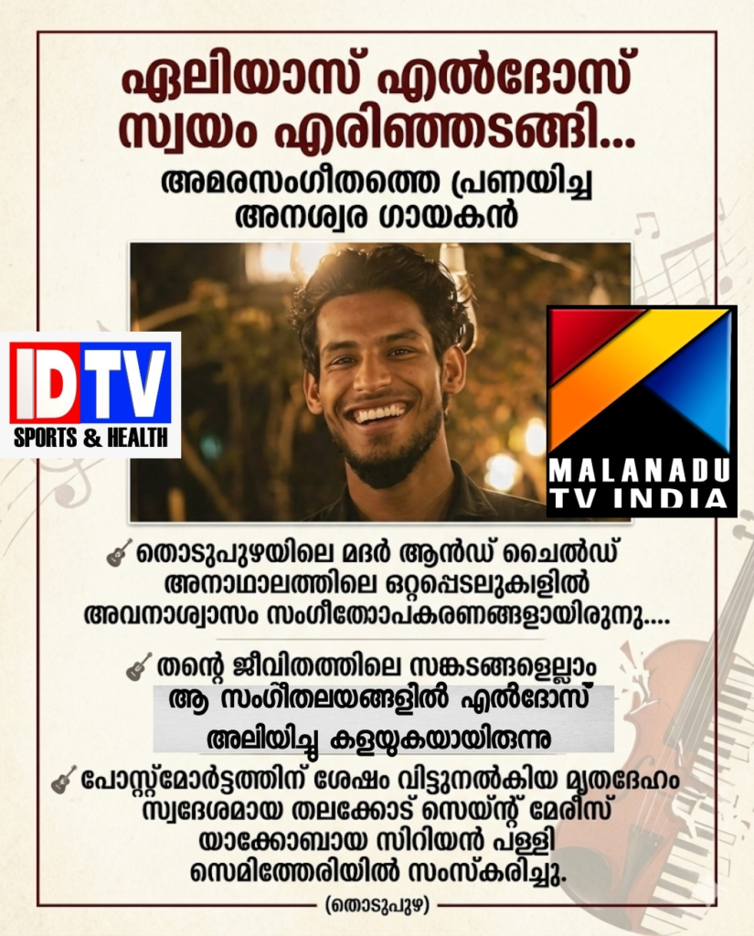 തൊടുപുഴ: മാതാപിതാക്കളുടെ പരിലാളനയോ സൗഭാഗ്യങ്ങളുടെ അകമ്പടിയോ ഇല്ലാതെ സംഗീതത്തെ മാത്രം കൂട്ടുപിടിച്ചു വളർന്ന പ്രതിഭ ഏലിയാസ് എൽദോസ് യാത്രയായി. വെള്ളിയാഴ്ച രാവിലെയാണ് ഉപകരണ സംഗീതത്തിലെ വിസ്മയമായിരുന്ന ഇരുപത്തിയാറുകാരനായ ഏലിയാസിനെ മുറിയിൽ തൂങ്ങിമരിച്ച നിലയിൽ കണ്ടെത്തിയത്. പ്രശസ്തരായ ഗുരുക്കന്മാരുടെ ശിക്ഷണമില്ലാതെ സ്വയം പഠിച്ചെടുത്ത വിദ്യകളിലൂടെ സംഗീത ലോകത്ത് തന്റേതായ ഇടം കണ്ടെത്തിയ കലാകാരനായിരുന്നു അദ്ദേഹം. ഒന്നര വയസ്സുള്ളപ്പോൾ തൊടുപുഴയിലെ മദർ ആൻഡ് ചൈൽഡ് അനാഥാലയത്തിൽ എത്തിയ എൽദോസിന് സംഗീതം മാത്രമായിരുന്നു ഏക ആശ്വാസം. തന്റെ ജീവിതത്തിലെ സങ്കടങ്ങളെല്ലാം ആ സംഗീത ലയങ്ങളിൽ അദ്ദേഹം അലിയിച്ചു കളയുകയായിരുന്നു.