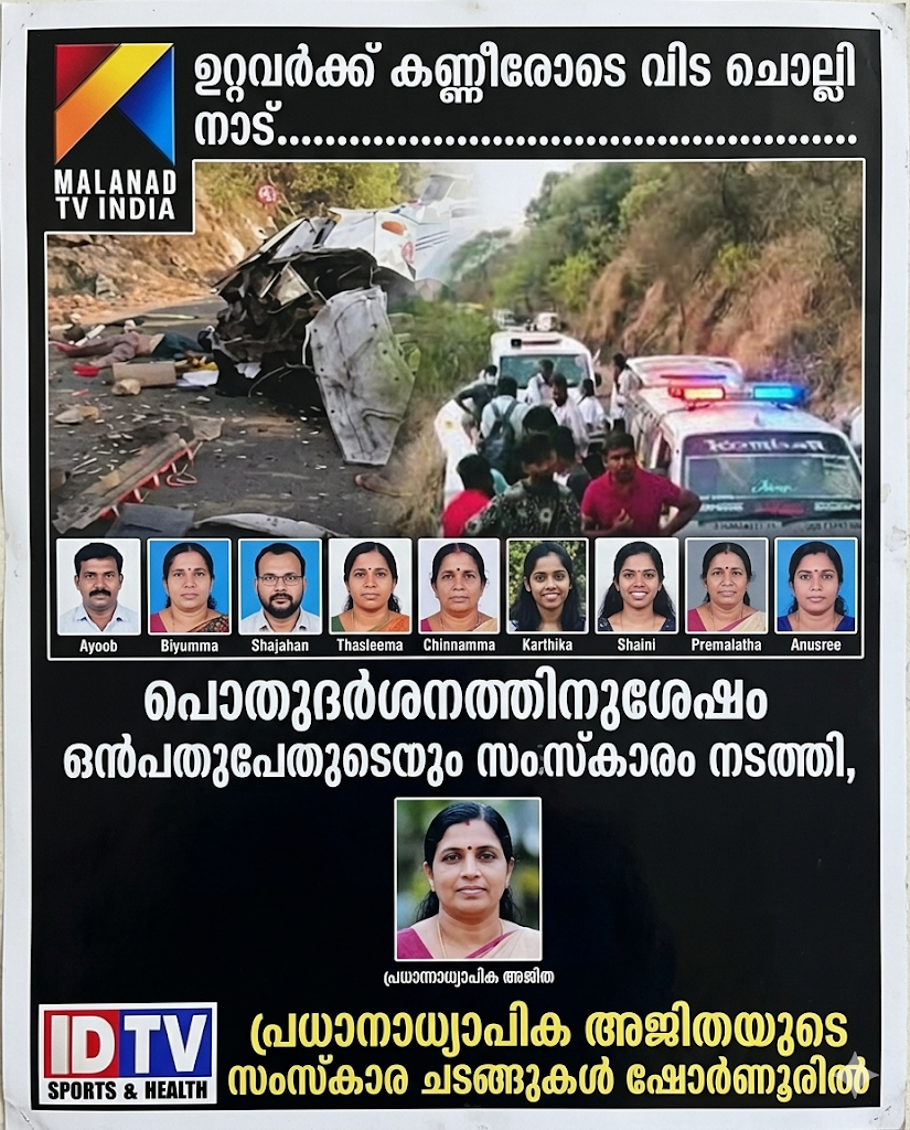 പൊതുദര്ശനത്തിനുശേഷം ഒന്പതുപേരുടെയും സംസ്കാരം നടത്തി, പ്രധാനാധ്യാപിക അജിതയുടെ സംസ്കാര ചടങ്ങുകള് ഷൊര്ണൂരിലും നടത്തി