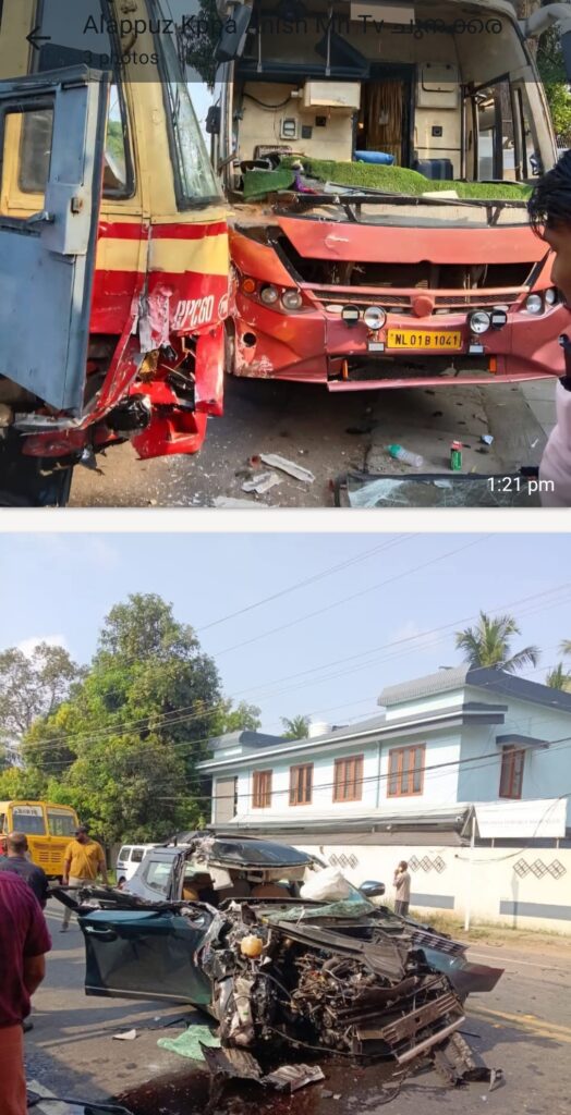 ഒരിടത്ത് ബൈക്കുകൾ കൂട്ടിയിടിച്ചു, മറ്റൊരിടത്ത് കാറും ബസ്സും കൂട്ടിയിടിച്ച് അപകടം