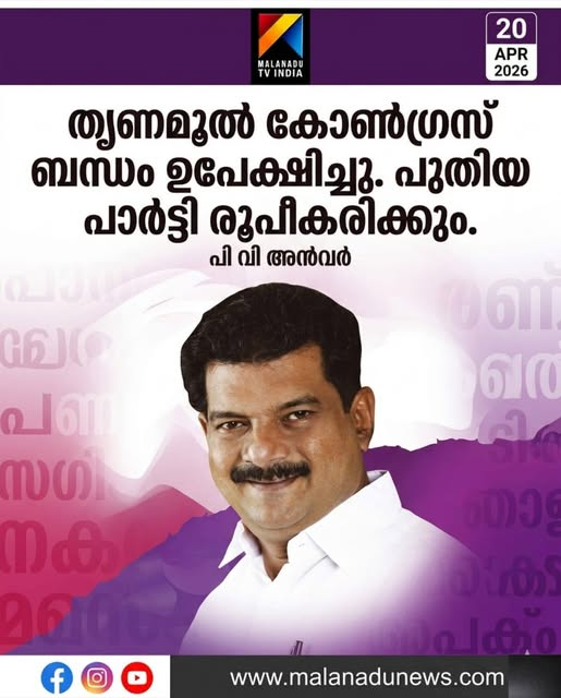 പി.വി അൻവര് തൃണമൂല് കോണ്ഗ്രസ് വിട്ടു, മെയ് -15നുള്ളിൽ പുതിയ സംസ്ഥാന പാര്ട്ടി പ്രഖ്യാപിക്കും.പി വി അൻവർ തൃണമൂൽ കോൺഗ്രസ് ബന്ധം ഉപേക്ഷിച്ചു.കൊച്ചിയിൽ നടത്തിയ വാര്ത്താസമ്മേളനത്തിലാണ് തൃണമൂൽ കോൺഗ്രസ് പാര്ട്ടിയുടെ സംസ്ഥാന കണ്വീനര് കേരള സ്ഥാനം രാജിവച്ചെന്ന് അൻവർ പ്രഖ്യാപിച്ചത്.മെയ് 15നുള്ളിൽ പുതിയ സംസ്ഥാന പാര്ട്ടിക്ക് രൂപം നൽകും.